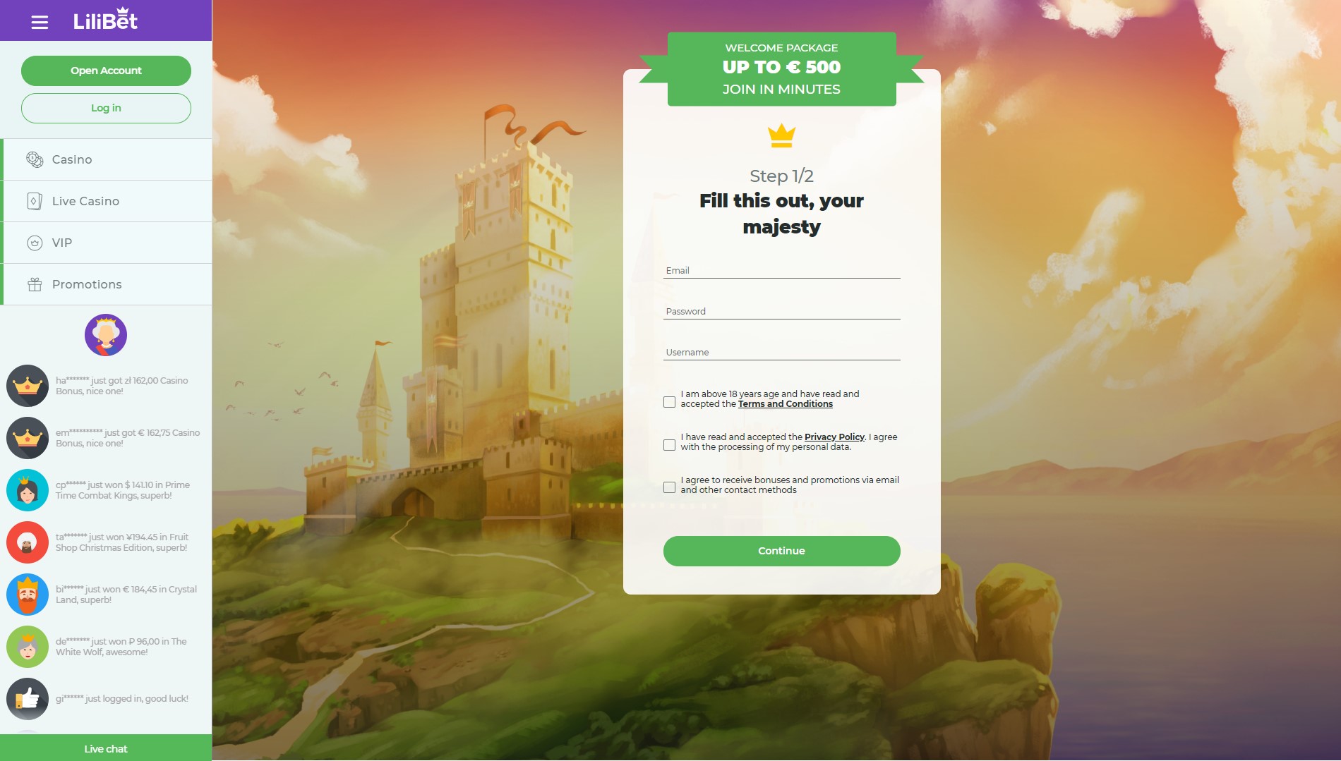 Lilibet Casino tilbyr mer enn 3000 spill på tvers av flere kategorier, fra spilleautomater til live gambling og sportsbetting: